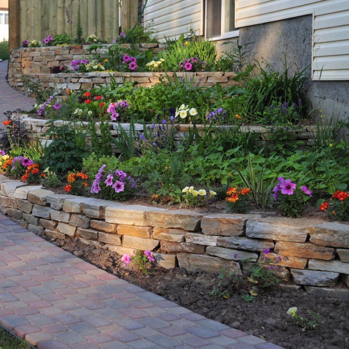 Ein wesentlicher Teil der Gartengestaltung sind gepflasterte Wege, Stufen, Plätze und Beeteinfassungen,